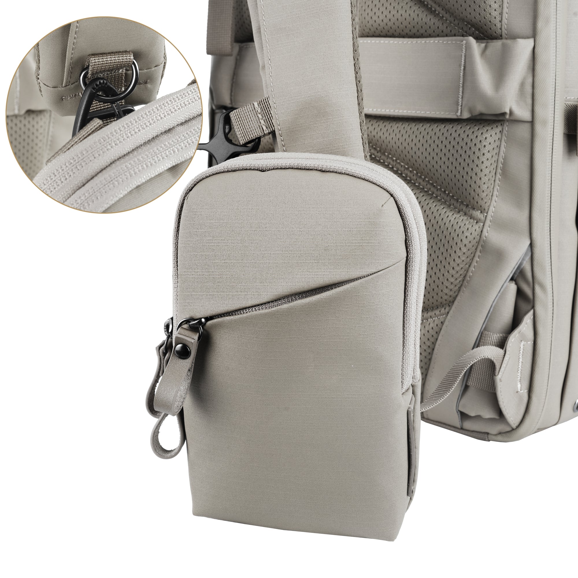 Versatility is built into the carry system. The pouch includes a removable shoulder strap, along with a rear loop and clip attachment, allowing it to be worn crossbody, attached to a backpack, or secured to a belt—adapting easily to your workflow and environment.